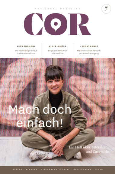 Eine Reportage über Weitwanderwege im Eisacktal, auf denen man tagelang den eigenen Gedanken nachhängen kann und die Stille und Weite genießt. Ein Tag auf der Piste mit einem jungen Mann in Frack und Zylinder, der die Gäste des Skigebiets Gitschberg Jochtal verzaubert. Historische Bilder aus einem Tal, durch das schon Dürer, Goethe und ein Elefant reisten. Und viele weitere Einblicke in eine besondere Region und ihre Menschen. All das bietet die dritte Ausgabe des Gästemagazins COR, die wir für die Tourismusvereine des Eisacktals konzipiert und produziert haben.