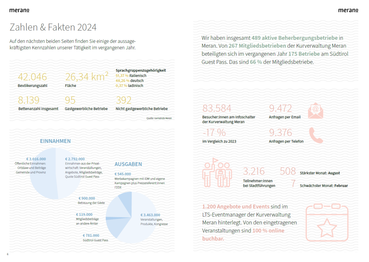 Wie macht man aus einem Jahresbericht mehr als nur eine Zahlenübersicht? Für die Kurverwaltung Meran entstand ein Format, das Informationen mit einer persönlichen Note und klarer Identität vereint.